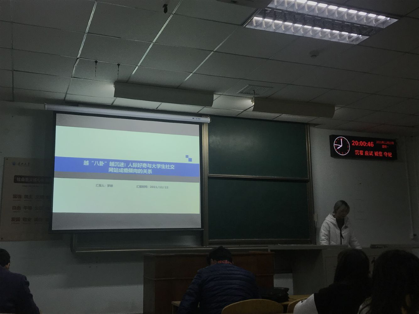 通讯员 张蔓茹20211122日晚7点整,第34次青少年网络心理与行为专题例会在13B210召开。此次例会共有22人参与,包括硕士生导师朱晓伟、连帅磊老师和他们的研究生,以及部分本科生。本次会议由陈旋同学、罗婷同学进行文献汇报,由张蔓茹同学负责本次的会议记录。