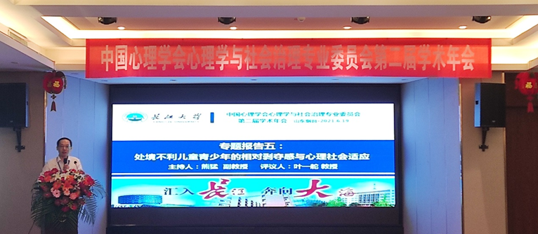 (通讯员熊猛)6月19日至20日,以“疫情背景下的社会心理建设”为主题的中国心理学会心理学与社会治理专业委员会第二届学术年会在鲁东大学召开。德赢官网熊猛副教授和3名研究生作为正式代表应邀参会并作专题报告。