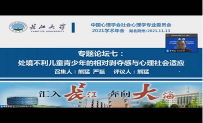 在“处境不利儿童青少年的相对剥夺感与心理社会适应”的专题论坛中,来自德赢vwin官方入口的心理系熊猛老师作了题为《Perceived discrimination and relative deprivation in Chinese migrant adolescents: The mediating effect of locus of control and moderating effect of duration since migration》的报告,关注流动青少的心理健康与社会适应问题。研究发现在控制性别和年龄后,感知歧视与流动青少年的相对剥夺感呈正相关,外部控制源在一定程度上调节了这种联系。这些结果在一定程度上能够为干预流动青少年的相对剥夺,以及加强对经历相对剥夺的青少年的心理健康服务提供实际指导。
