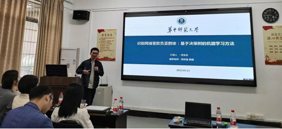 接着,宋友志博士以《识别网络受欺负亚群体:基于决策树的机器学习方法》为主题进行了报告。结合网络欺负行为的研究现状,提出了基于决策树的机器学习用于预测网络欺负受害这一研究目的。
