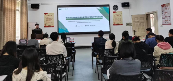 在上半场报告中,曹阳博士报告了题目为《教育游戏中虚拟同伴和学习者的交互对学习的影响》的研究。通过开发的一款教育游戏进行研究来具体澄清教育游戏中虚拟同伴的作用、不同交互对学习的影响以及关系、不同交互影响学习表现的中介机制、个体特征和交互类别的匹配性四个问题,展示了教育游戏对学习者的影响。