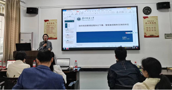 经过短暂的茶歇后,会议下半场随之进行。甘进华博士报告了题目为《如何有效管理远程办公员工:管理者支持和控制的作用》的研究,向大家解密了远程办公中管理者支持行为和控制行为对增加员工工作绩效和身心健康的影响。