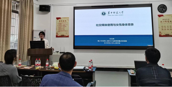 最后,姚良爽博士报告了主题为《社交媒体使用与女性身体意象》的研究。以接触社交媒体中的理想化女性人物图片引发的女性消极身体意象影响为切入点,向大家介绍了消极身体意象的后果,以及积极身体意象的正面作用及其干预实验。