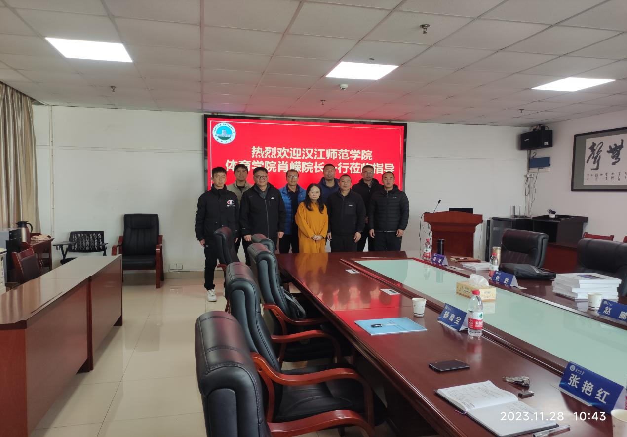 2023年11月28日上午,汉江师范学院体育学院院长肖嵘、副院长赵鹏、副院长张舒、分党委副书记张鸿、教学科研办公室主任周延、健身休闲教研室主任尹上、球类教研室主任刘汪洋一行来德赢官网调研体育教育专业师范认证工作。调研座谈会在文科楼905会议室举行,会议由院长张艳红主持,副院长杜光友、体育教育系系主任杨青宝参加了调研座谈会。