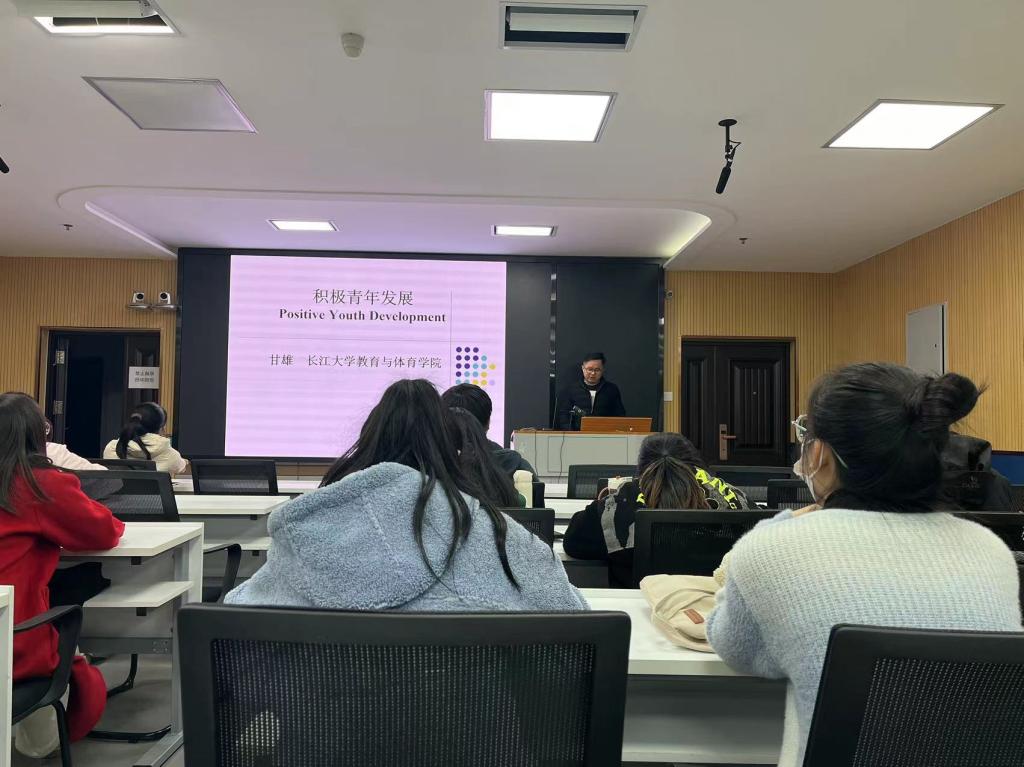 (通讯员 赵玉娇)2023年12月6日晚,德赢官网在文科大楼910报告厅举行了“德赢AC米兰官网第五届研究生科技节之研究生导师论坛”第三场活动。本次活动由熊猛副院长主持,甘雄博士主讲,报告主题为“积极青年发展”。德赢官网心理类专业的研究生及其他感兴趣的师生约60人参加了本次活动。