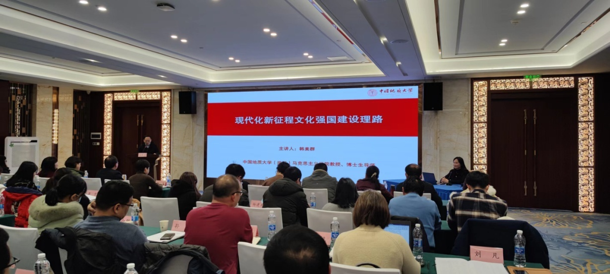 在专家讲座环节,熊猛教授作为优秀青年社科人才代表主持了中国地质大学(武汉)马克思主义学院韩美群教授的专题辅导报告《现代化新征程文化强国建设理路》。他表示,作为新时代的社科工作者,我们要深化研究阐释习近平文化思想,发挥学科优势,深入挖掘贯穿文化之中的政治性、思想性、学理性、规律性、创新性,切实担负起新时代新的文化使命,回答好新形势新任务下文化强国建设的时代答卷。熊猛教授的精彩主持受到了与会人员的一致好评。