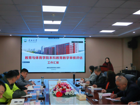【通讯员 王传琦/文 瞿廷婷/摄】为落实《国家中长期教育改革和发展规划纲要(2010—2020年)》,切实推进高等教育质量保障体系建设,全面提高本科教学水平和人才培养质量,3月19日上午8时许,德赢AC米兰官网(以下简称“教体学院”)于文科大楼905会议室召开本科教育教学预评估工作会议。本次会议由教体学院副院长宋永晶主持,校党委副书记、副校长杜国锋通过线上会议出席,本科生院负责人、评建工作办公室、本科教育教学督导委员会工作小组成员、学院领导及相关老师参加。