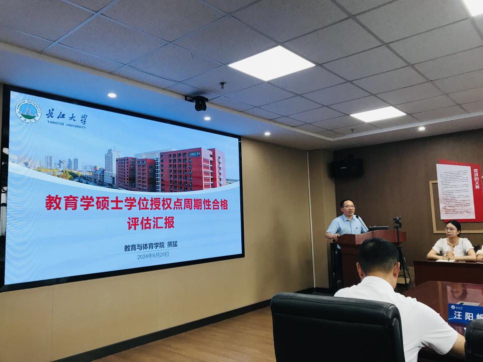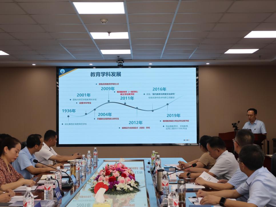 副院长熊猛教授从德赢vwin官方入口总体概况、教育学一级学科硕士学位授权点基本情况、自我评估工作开展情况和持续改进计划等方面详细汇报了我校教育学学位授权点的建设进展。