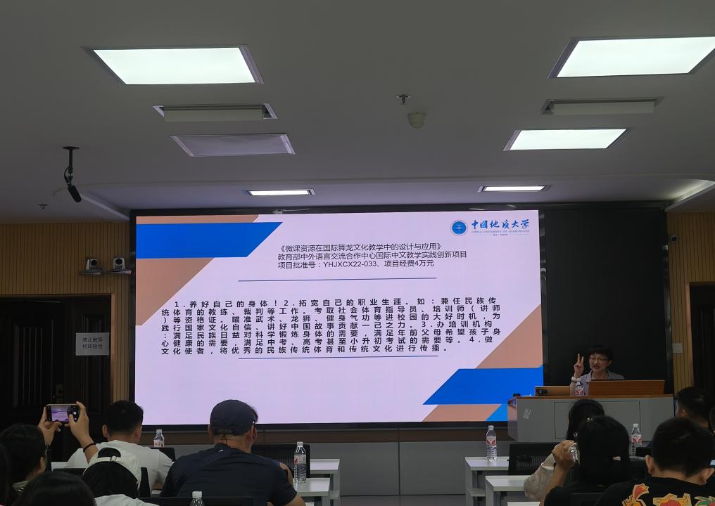 最后,胡凯教授基于武术与民族传统体育的过去与现在,表示我们的体育在将来一定大有未来。作为未来体育事业的建设者与探索者,我们也一定要有一些思考,如拓宽职业生涯、做文化使者等,将优秀的民族传统体育和传统文化进行传播。