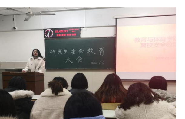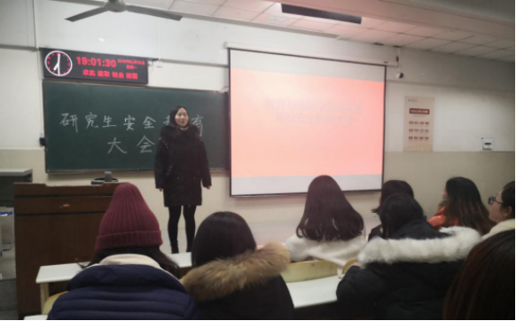 (通讯员 苏春来)为了学生安全着想,1月6日晚7时许,德赢官网在12教104教室举办了研究生“寒假安全教育大会”。此次与会的人员有辅导员任雯婷以及全体研究生,主讲人为邵倩。