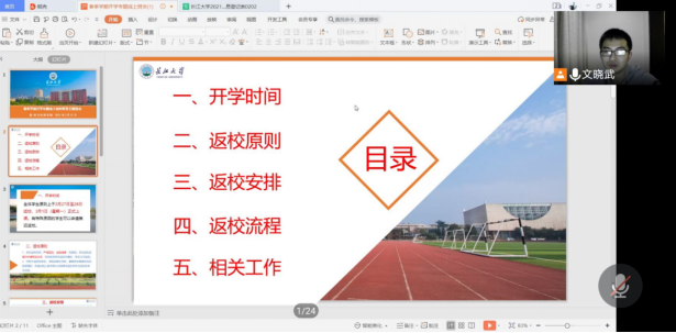 为认真落实学校关于校园疫情防控的总体要求,确保学院2021年春季开学和学生返校工作平稳有序开展,根据《德赢vwin官方入口2021年春季学期本科生返校工作方案》要求和学院的实际情况,2月21日至24日,德赢官网组织学生以班级为单位,召开了春季学期开学专题线上班会和家长会。