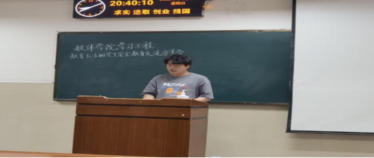 在交流分享会中,团支书邹永东从国家安全的内容、范围和如何维护国家安全三个方面进行了宣讲。他提到大学生需自觉维护国家安全利益,保障国家长治久安。安全无小事,时刻记心间。只有每个人都提高警惕,才能共同保卫国家安全,保护自身安全。