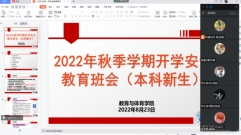 为做好校园疫情防控,响应学校学生分批次来校报到、到校后严格管控、统筹推进常态化疫情防控和秋季平稳推进开学工作的号召,确保德赢官网秋季学期开学相关工作平稳有序开展,8月23日-25日,德赢官网以班级为单位,年级辅导员牵头,班主任参与,利用腾讯会议、QQ、微信等形式,组织全院学生召开2022年秋季开学学生返校安全教育专题班会。