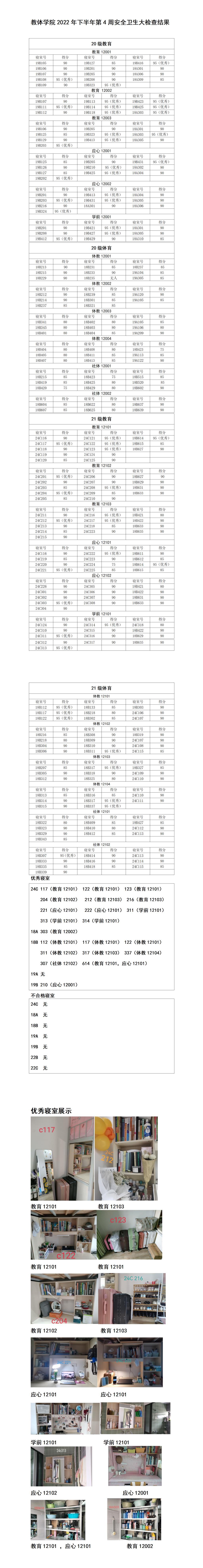 教体学院2022年下半年第4周安全卫生大检查结果