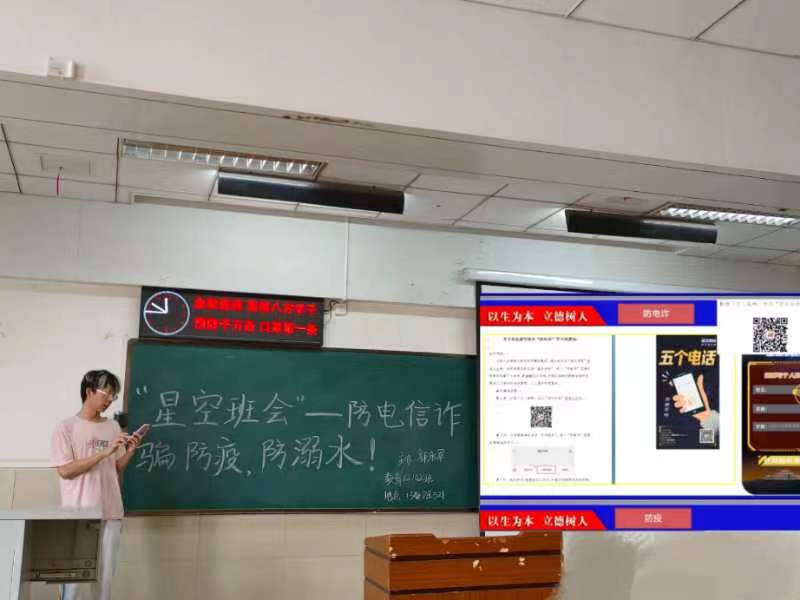 会上,年级辅导员面向全体学生主要开展了疫情防控教育、防诈骗教育、生命安全教育和防溺水安全教育,以强化学生的安全意识和纪律意识。号召全体学生积极参与星空班会“防电诈”的学习活动,要求做到全覆盖无遗漏,进一步提高防诈骗的意识;着重强调了学校相关的疫情防控管理规定,要求学生务必严格遵守和配合校园疫情防控政策,做到非必要不外出,减少人员流动,降低感染风险;结合案例分享,强调防溺水的相关安全问题,严禁学生到自然水域游泳,以加强学生自我防范和自我保护意识,提高学生逃生避险、自救互救技能。