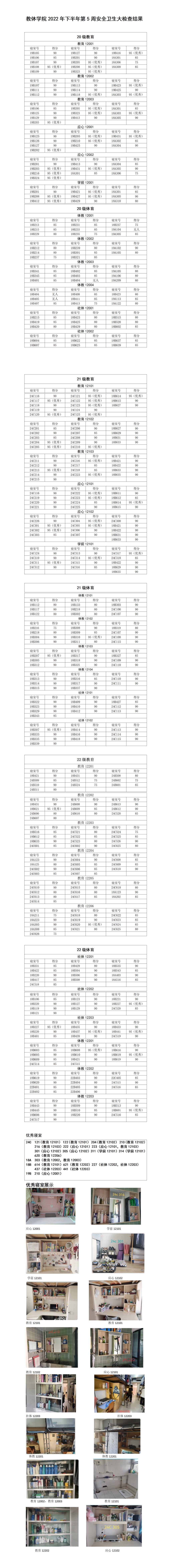 教体学院2022年下半年第5周安全卫生大检查结果