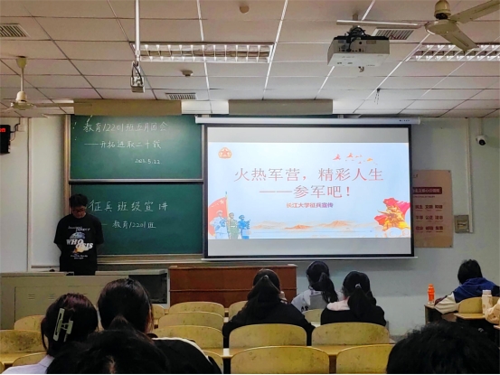 【通讯员 白薇 瞿廷婷】为鼓励学生积极参与应征入伍,5月22日至5月28日,德赢AC米兰官网以班级为单位,利用班会、团会、晚自习陆续开展了征兵宣传活动,各辅导员、班主任及全体同学参会。