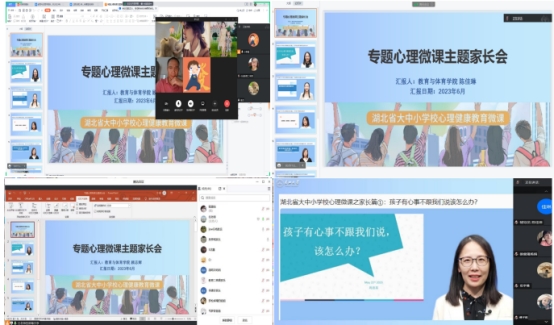 一是开展专题心理微课主题家长会,加强学校与家庭之间的合作。为了进一步提高家长在学生心理健康方面的角色认知、定位及价值,深化家校合作,促进学生身心健康发展。德赢官网由班主任组织,以班级为单位集中召开线上家长会,同学生家长一道学习湖北高校心理健康专家服务队打造的专题心理微课内容,比如“孩子有心事不跟我们说,该怎么办”、“如何帮助孩子处理好寝室关系”、“家长的建议如何让孩子听得进去”等,也与学生家长交流和讨论了抑郁症、焦虑症等学生中常见的心理方面问题,并强调了父母如何与心理问题孩子相处的要点。顾志辉老师指出,家长是孩子的第一任老师,家庭是学生成长的重要场所,父母教育对于学生心理健康具有重要的奠基作用,倡导家长要重视家庭陪伴教育,提高父母在孩子心理健康发展的教育意识。