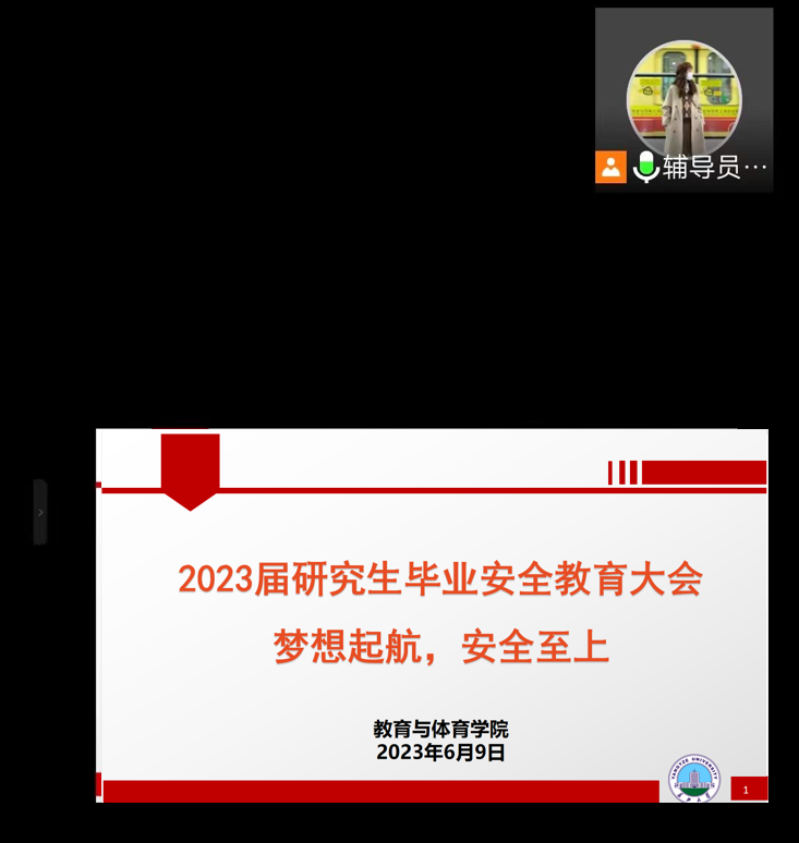 本次会议作为德赢官网2023届研究生的“最后一课”,为毕业生文明离校营造了浓厚氛围。新起点、新征程,教育与体育学院祝愿每一位毕业学子都不忘初心,牢记使命,一切顺利,前程似锦!