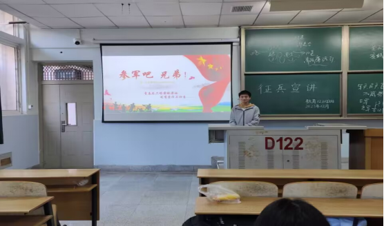 【通讯员 宁妙卓】 为进一步加大征兵宣传力度,激发大学生参军入伍的积极性,12月,德赢AC米兰官网以班级为单位,利用班会、团会、晚自习陆续开展了征兵宣传活动,各辅导员、班主任及全体同学参会。