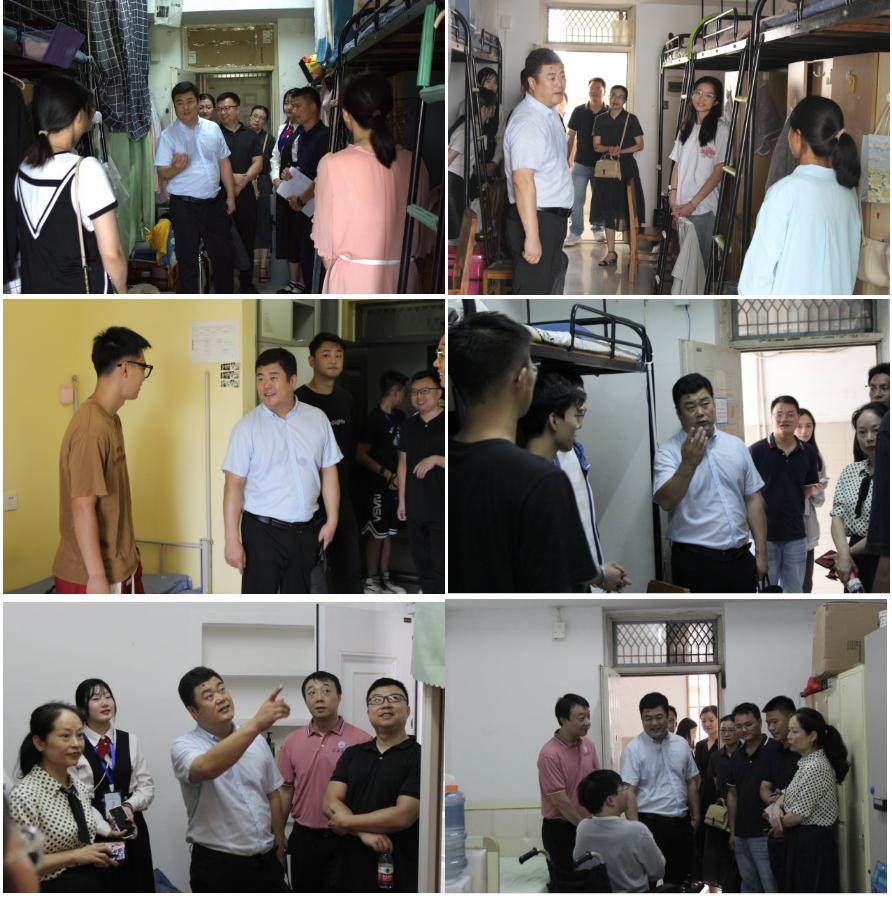 学院领导们亲切关怀新生的校园生活,仔细察看住宿条件和生活环境,耐心地询问他们的生活状况及遇到的困难,认真听取同学们的意见建议和诉求。在交谈交流中,于书记告诉新同学们:“一个寝室就像一个小家庭,需要共同维护,相互沟通,互相体谅,才能解决寝室矛盾,处理好人际关系。”他叮嘱大家一定要和谐共处,一起成长。同时还号召同学们要继承和发扬“聚是一团火,散是满天星!”的团结精神,有一分力,发一寸光,共建教体学院的美好明天。