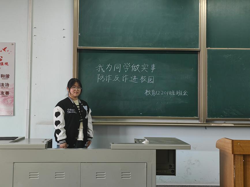 班会结束后,来自教育12201班的王洋同学深有感触,她提到:“在网上和在身边,总是会看见,总是会听见各种各样的诈骗案例,无论是什么身份,我们都会接触到不同诈骗形式。听了这次反诈宣传主题宣讲后,我深刻意识到诈骗就在我们身边,我们要增强防诈骗意识,防患于未然。”