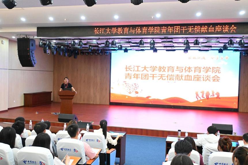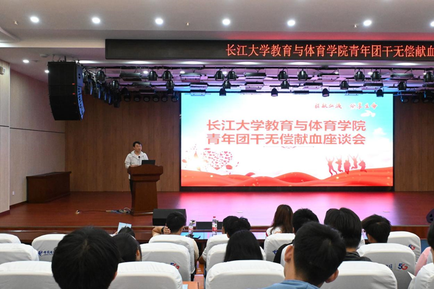 【通讯员:曾灿辉 王传琦 吴明淏】⼀滴爱⼼⾎,⼀⽣公益情。为进一步推进无偿献血科普知识深入人心,弘扬大学生的志愿服务精神,营造关爱他人、奉献爱心的浓厚氛围,10 ⽉ 29 ⽇下午2时许,荆州市中⼼⾎站举行⻘年团⼲⽆偿献⾎座谈会,德赢AC米兰官网党委副书记何可可带领全体辅导员和班长们现场参加。